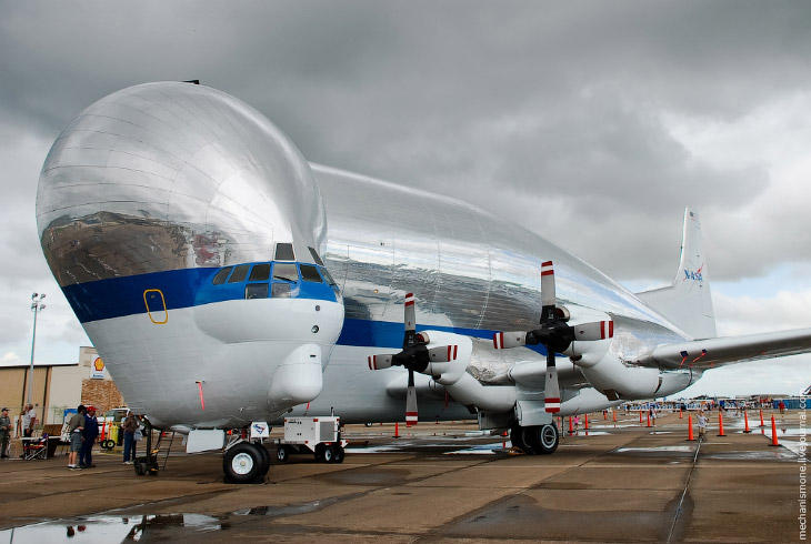 2. Джон Конрой решил создать объемный транспортный самолет, и купив списываемые в тот момент Боинги B-377, приступил к работе. Первым делом Конрой удлинил фюзеляж самолета путём вставки вырезанного фюзеляжа с другого самолета. Сделав несколько тестовых полетов и убедившись в том, что самолет чувствует себя в полёте хорошо, Конрой сделал надстройку над фюзеляжем в той форме, в которой мы видим самолет сегодня. Первоначально надстройка эта была фальшивой и закреплялась на оригинальном фюзеляже самолета только для аэродинамических испытаний.