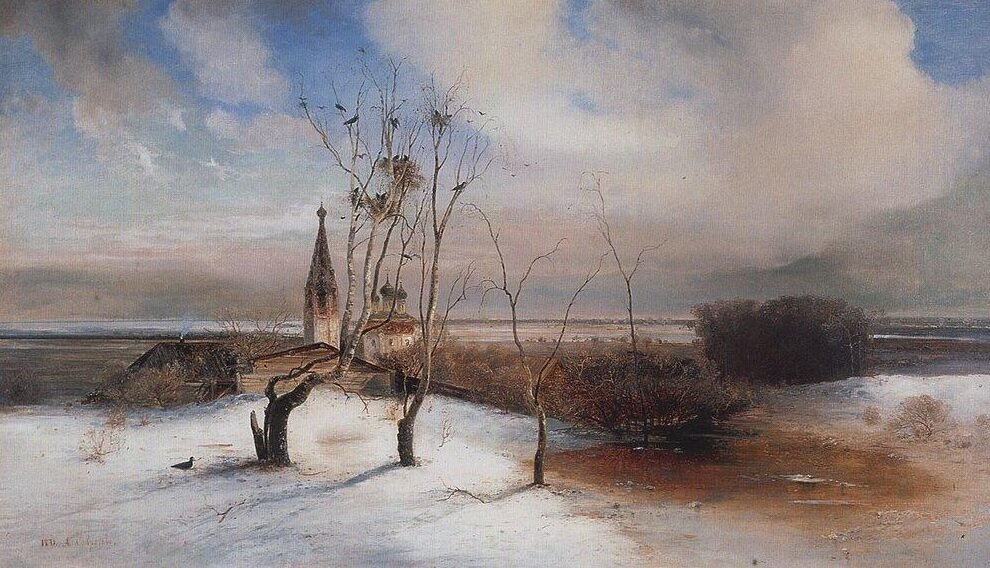 В мае 1871 года семья вернулась в Москву. Там Алексей Кондратьевич завершил работу над самой своей известной картиной, которую назвал "Вот прилетели грачи".