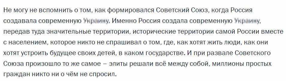 Что касается передачи, якобы исторических территорий России, то и тут господин Путин и тут лукавит, т.к. это были части территории Российской империи, а НЕ России или даже РСФСР.