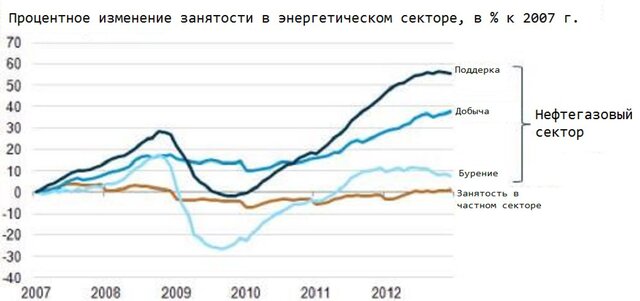 И занятость стремительно растет. Добыча нефти и газа, судя по всему, внесла большой вклад в восстановление числа рабочих места после кризиса 2008 г.