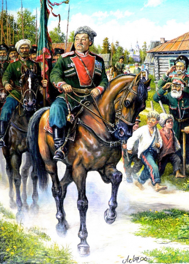 Казаки - особое сословие в царской России, селившееся по окраинам страны и имевшее целый ряд привилегий, но за это несшее ряд повинностей перед государством. Начнём с последних. Если среди обычных граждан призыву на военную службу в мирное время подлежала лишь небольшая часть мужского населения, то казак всегда в седле на государевой службе. Последнее было обусловлено ареалом проживания казачества в неспокойных приграничных, а зачастую и заграничных территориях.