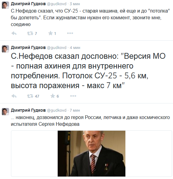 С.Нефедов сказал дословно: «Версия МО — полная ахинея для внутреннего потребления. Потолок СУ-25 — 5,6 км, высота поражения — макс 7 км»