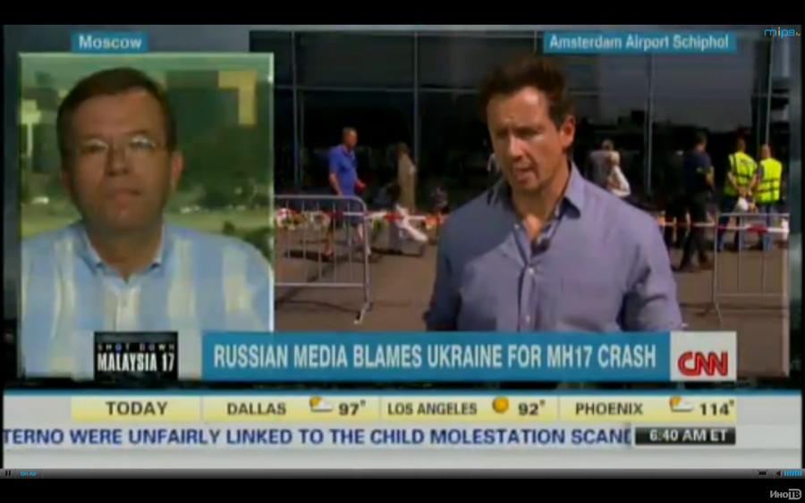 В рамках освещения катастрофы малайзийского Boeing 777 на Украине американские СМИ в целом заняли изначально обвинительную позицию в отношении России. Так, в ночь на 23 июля по московскому времени в эфир американской телекомпании CNN вышел материал о брифинге представителей американской разведки, которые представили некоторые имеющиеся у них данные относительно крушения самолёта Boeing 777 на территории Украины. Предваряя этот сюжет, журналисты выдвинули обвинения в организации катастрофы в адрес России, но никаких подтверждений со стороны разведчиков не последовало.