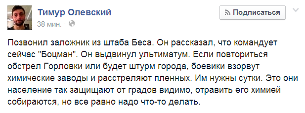 Хочу кое-что сказать террористам. Господа, бегите. Бегите, пока еще есть возможность. Ваши командующие обманывают вас. Ваши журналисты врут вам о ситуации. Просто сравните карту военных действий сейчас и месяц назад. Вы почти уничтожены. Поймите, украинцы не хотят вас убивать. Но ваша кровавая идея "русского мира" здесь никому не нужна. Не нужно ее навязывать.