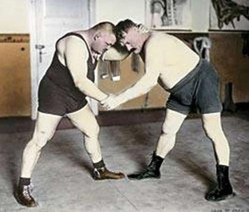 Неотъемлемой частью цирковых представлений рубежа ХIХ — ХХ веков были выступления силачей и бойцовские схватки.