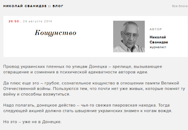В 20:50 на сайте высказался либеральнейший Николай Сванидзе.