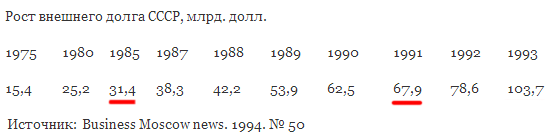 Так же Горбачёв наращивает государственный долг, якобы для закупки продовольствия за границей. Ответить на вопрос, куда Горбачёв дел эти деньги, до сих пор не может никто.