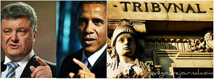 Неформальный «трибунал Рассела» признал президентов Украины и США Петра Порошенко и Барака Обаму, а также председателя Еврокомиссии Жозе Мануэла Баррозу и экс-генсека НАТО Андерса Фога Расмуссена виновными в совершении военных преступлений в Донбассе. На суде среди обвиняемых также фигурировал глава Евросовета Херман ван Ромпей, однако в приговоре его имя отсутствует.