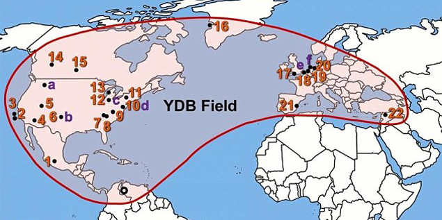 Первыми о бомбардировке из космоса заговорили исследователи под руководством Джеймса Кеннетта (James P. Kennett) из Калифорнийского университета в Санта-Барбаре (University of California). В 2007 году они нашли россыпи микроскопических шариков, которые образуются в результате того, что порода быстро нагревается при высоких - порядка 2000 градусов - температурах и давлении и быстро остывает. А такое бывает в результате ударов метеоритов и комет об Землю.