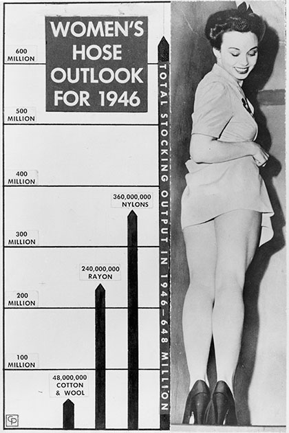 Объем производства нейлоновых чулок вырос до 54 миллионов пар в месяц в 1946 году. Кому не хватило — тот сам виноват!