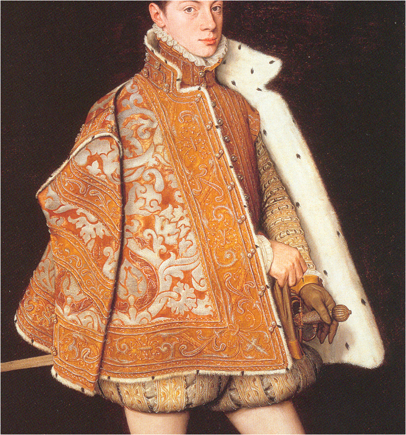 С непревзойденным мастерством Алонсо Санчес Коэльо и его ученики передавали мельчайшие детали придворного костюма, узорчатые парчовые и атласные ткани, жесткие кружевные воротники, вышивки, жемчуг, сверкающие самоцветы.