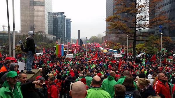 Более 100 тыс. человек вышли на улицы Брюсселя для участия в национальной акции протеста. Митингующие выступают против объявленных правительством мер бюджетной экономии и повышения пенсионного возраста. Протесты переросли в столкновения с полицией, представителям правоохранительных органов пришлось применить водомёты.