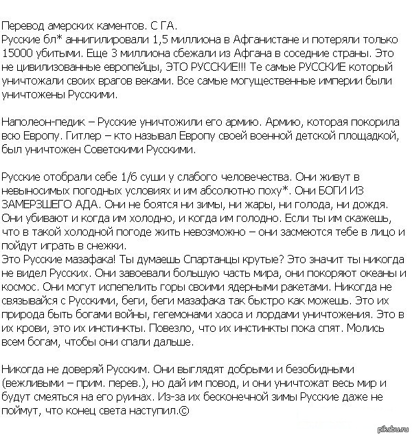 В заключение хочу сказать, что каламбур генерала Евтуховича выложил в Интернете кто-то из наших офицеров. Не утерпел служивый, ехидство победило военную дисциплину. С тех пор название «пиндосы» и прилипло к америкосам. Обидно им это или нет – их личное дело, а на обиженных воду возят.