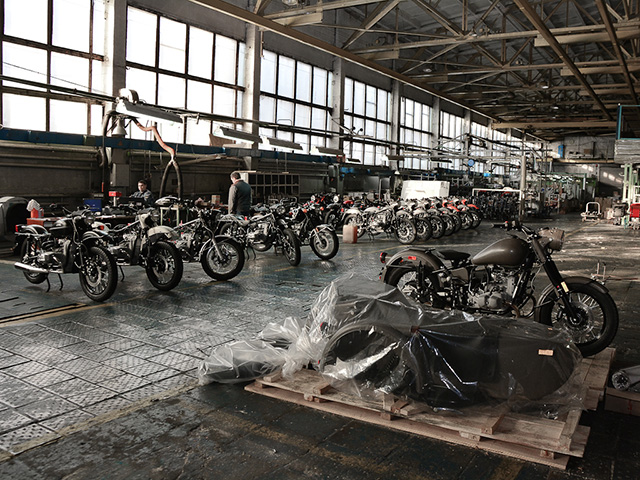 От огромного хозяйства заводу осталось здание цеха и административная постройка. Теперь мотоциклы собирают исключительно вручную стапельным методом, а ежедневный план – пять штук, что эквивалентно примерно 1200 мотоциклам в год: в 100 раз меньше, чем в пиковые годы. Половина экспорта – в США, еще более 40% – в остальные страны, в России оседают проценты.