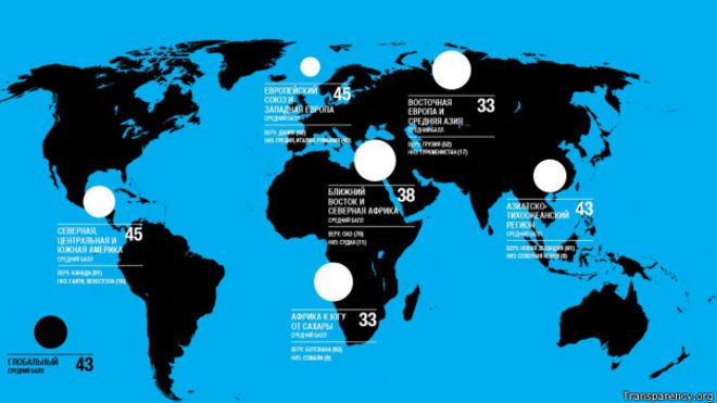 Россия в этом году получила 27 баллов - на один балл меньше, чем в 2013-м, и на шесть меньше, чем в среднем по восточно-европейскому и среднеазиатскому региону.