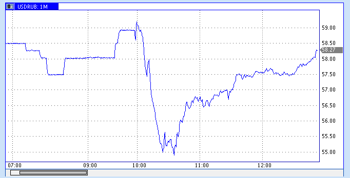 Приговор Навальному к обеду сожрал огромные утренние валютные интервенции ЦБ, курс возвращается к 59 рублям за $1