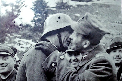 Дружеское рукопожатие братьев по оружию маршала Смиглы и генерала фон Штудница на военном параде уже в "мирное" время, после успешного завершения "мирного" дербана Чехословакии.