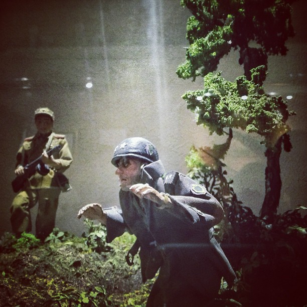 Новый музей Корейской Войны в Пхеньяне. Крошечная модель в витрине изображает генерал-майора армии США Уильяма Ф. Дина — военного с самым высоким званием, попавшего в плен во время Корейской войны. Июль 2013-го года.
