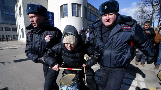 Нескольких активистов, в том числе двух девушек, пытавшихся бить в барабаны, забрала полиция