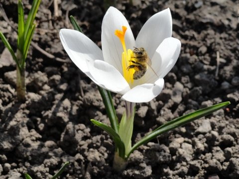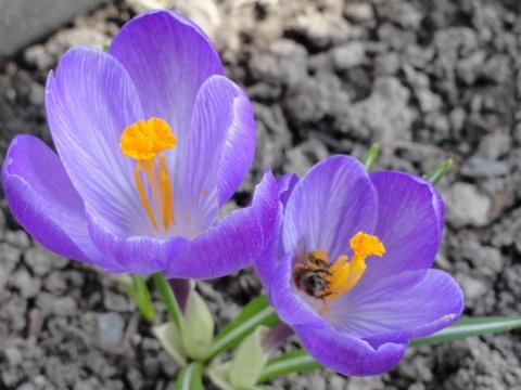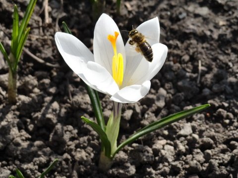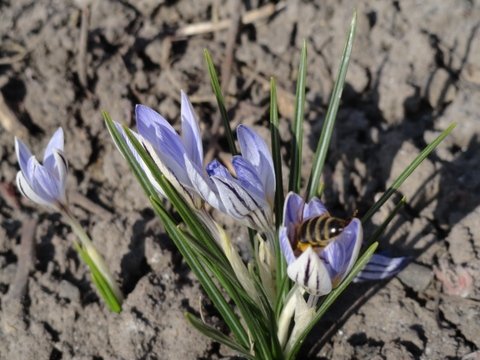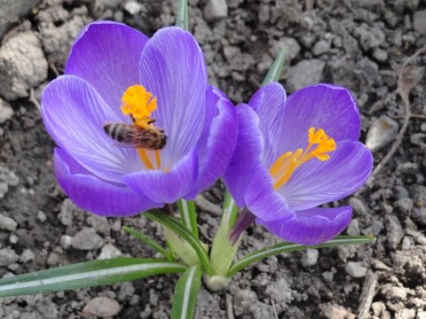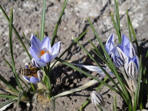 Не ради конкурса , а ради повышения настроения : первые пчёлы на первых весенних цветах !