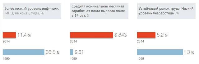 Активы российской банковской системы выросли более чем в 20 раз, достигнув почти $1,4 трлн, а капитализация российского фондового рынка увеличилась в 10 раз, составив к 2014 г. более $400 млрд.