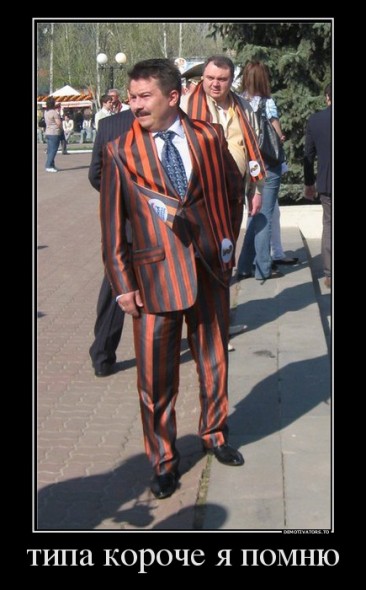 Последние несколько лет наблюдается тенденция: чем ближе День победы, тем больше случается фотохудожественных скандалов на патриотическую тему. Иногда возникает ощущение, что патриоты-креативщики объявили негласное соревнование с целью перещеголять друг друга. В ход идут все средства. Появившиеся в прошлом году в Челябинске плакаты с российским флагом с поменявшимися местами полосами — уже банальность. В этом году на плакатах и открытках снова самолеты люфтваффе изображают советские истребители, американские пехотинцы времен вьетнамской войны превращаются в русских партизан (на одном из плакатов к 9 Мая за усталым лицом американского морского пехотинца с карабином вполне отчетливо просматривается пальма), прошлогодние плакаты призывают пройти от Москвы до Берлина пешком («Наши деды прошли — попробуй и ты») или попробовать «прожить на 150 граммов хлеба в день». Иные акции и вовсе вызывают оторопь — в Екатеринбурге изображением ордена Славы украсили ценники в секс-шопе (разразился скандал, все убрали). В том же Екатеринбурге устроили чаепитие для ветеранов в самом красивом помещении города — зале ритуальных услуг местного крематория. Скидка на кремирование и подарочный набор в виде букета искусственных цветов… А уж как они предлагают использовать георгиевские ленточки… Действительно — любят родину широкими мазками.