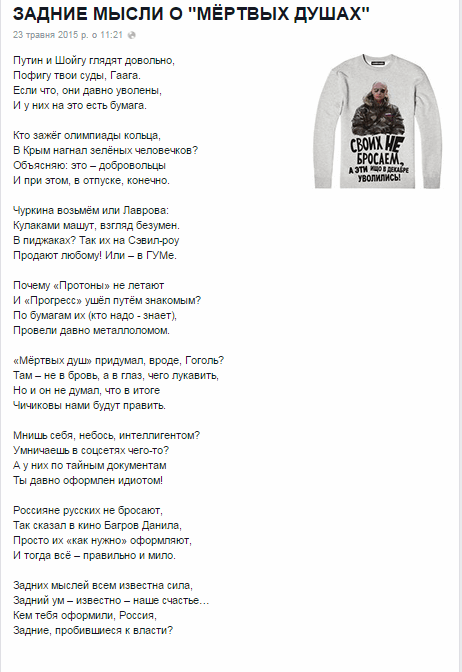Путин отнял Крым не только у украинцев, но и у белорусов, литовцев, латышей. В общем, насрал в душу многим.