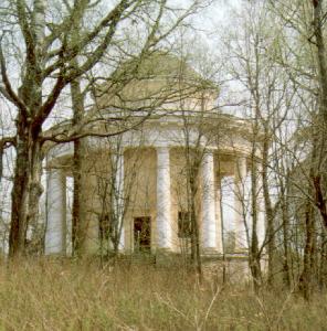 Храм построили в виде ротонды, украшенной по фасаду колоннами, а на входе – портиком дорического ордера с треугольным фронтоном. Невысокий (15 метров) и не очень широкий (25 метров в диаметре), он, казалось, парил в воздухе над окраиной леса. Нежно-белая, увенчанная зеленой полусферой купола, с маленькой позолоченной маковкой с крестом, церковь чудесно гармонировала с окружающими живописными видами.