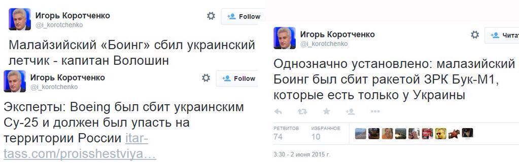 "Во-первых, заранее все необходимые службы на Украине были поставлены в известность. Во-вторых, оружие, которое использовалось в это время, по тактико-техническим данным не могло достать воздушных коридоров, в которых находилось наше воздушное судно…
