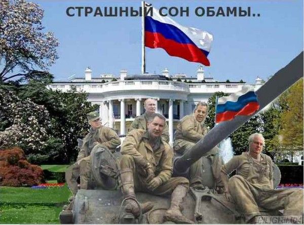 – Алло. Товарищ Жуков? Как дела с приглашением господина американского президента, как его там… Обам Бараки, на Политбюро? Что? Члены делегации только что взяли второй этаж Белого дома и уже ломают дверь в Овальный кабинет? А почему так медленно, вас же послали пять часов назад. А! По пути взяли Капитолий… Потери есть? Сенатор Маккейн укусил за ногу командира роты спецназа? Ничего, сделайте раненому укол от бешенства и до свадьбы заживёт. Ждём вас.