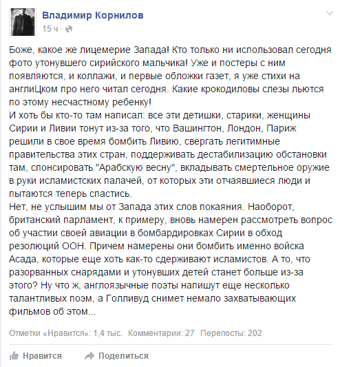 Вы хотите сказать, что войну развязал Башар Асад? Или Вы полагаете, что он недостаточно успешно истребляет бандитскую сволочь?