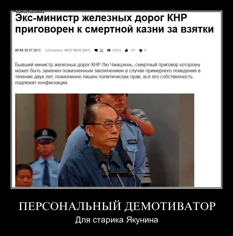 "Речь идет об обыкновенной человеческой обиде - на неожиданное увольнение, на нестатусное предложение", - заявил агентству собеседник, близкий к администрации президента. "Якунин, похоже, просто психанул, поэтому не пошел в Совет Федерации", - поддержал это мнение источник, близкий к РЖД. "Это была почетная отставка, вот он и отказался", - добавил он.