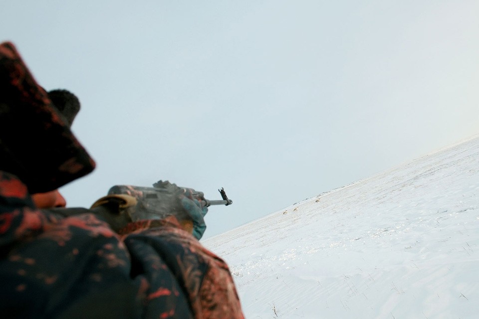 Приблизившись к цели, охотник замедляет машину, встает на ходу и стреляет, затем дает газу, снова встает и стреляет… За эти секунды мне нужно достать камеру, сфокусироваться, скадрировать, снять, снова спрятать камеру за пазуху — более экстремальной съемки в моей жизни не было.