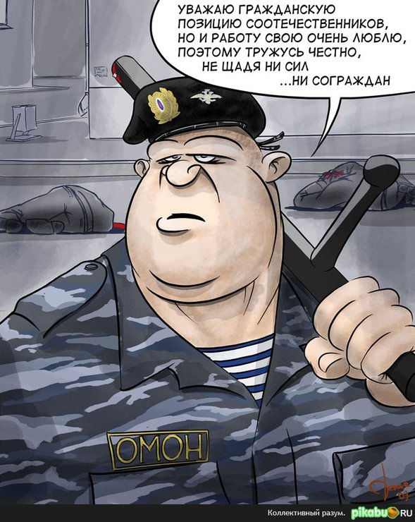 В «Лексус» въезжает «Мерседес». Из «Лексуса» выскакивают четыре братка с бейсбольными битами. Из «мерса» — четыре омоновца с автоматами. Молчание. Омоновцы спрашивают: