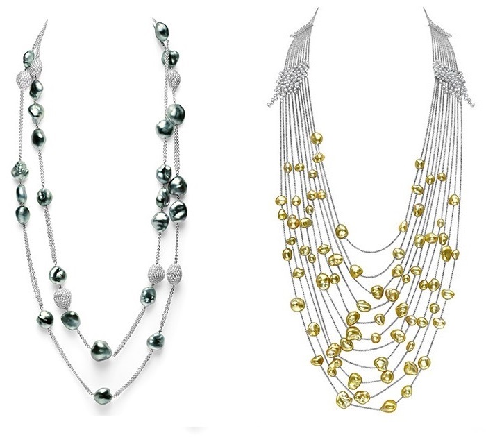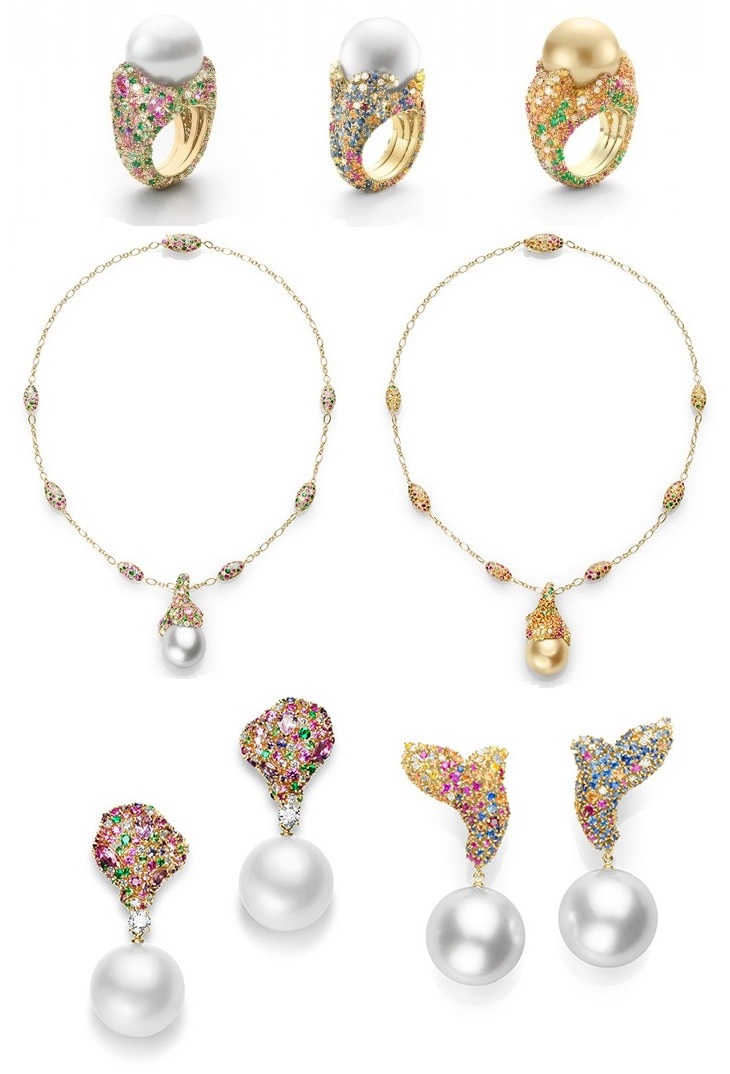 Коллекция Pearls in Motion с разнообразым, игривым и функциональным дизайном. Запатентованный механизм позволяет индивидуально переместить каждую жемчужину вдоль золотой цепочки, создавая бесконечные варианты с помощью одного ювелирного изделия.