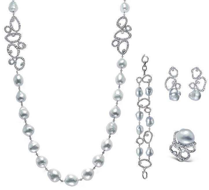 Сияние бриллиантов как нельзя лучше подчеркивает природную красоту жемчуга.