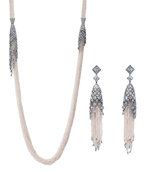 Почти в каждом украшении жемчуг сочетается с драгоценными камнями — бриллиантами, изумрудами, сапфирами, рубинами, аквамаринами, бериллами, нефритом и танзанитами.