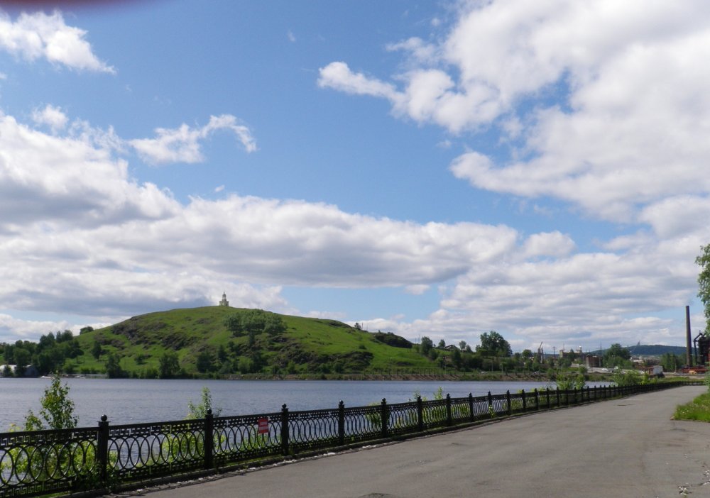 башенка на вершине - это пожарная каланча, именно в этой горы был виден весь город, и на место пожара сразу выезжали пожарные.