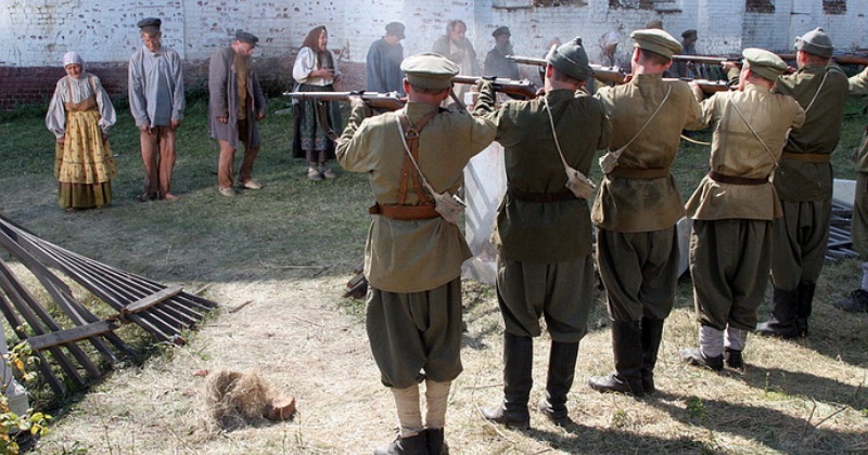 Дальше он попросил, чтобы сход назвал ему всех уважаемых людей. Крестьяне, переговорив между собой, решили так, что если в этом совете будут хорошие и всеми уважаемые люди, то пусть будет совет. Далее, бойцы красного отряда действовали по хорошо отработанному, безотказному сценарию: Когда вышли все, их сразу же взяли в кольцо китайцы и, щелкая затворами своих винтовок, стали оттеснять к церковной стене. Раздалась команда и прозвучал винтовочный залп. Среди народа раздался женский истошный вопль, а затем заголосили и все остальные женщины. Мужики, шокированные произошедшим, не могли прийти в себя от такой подлости комиссара. Выходило, что они ему выдали на смерть всех, кого уважали. Первыми на китайцев и остальных отрядников кинулись бабы, а потом опомнились и мужики, похватав оглобли и колья.