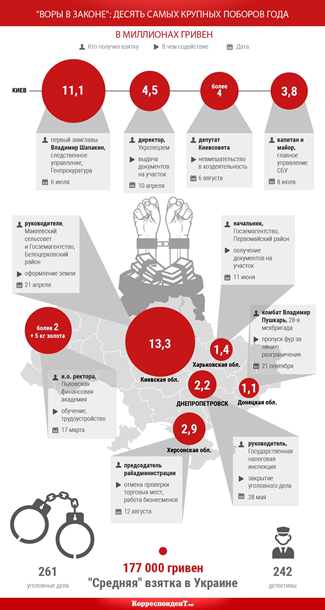 Инфографика: топ-10 взяток в Украине с начала года