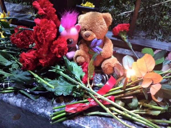 Елена пришла со своей пятилетней дочкой, они положили цветы, а девочка принесла свою игрушку. "Там детки остались без игрушек, пусть возьмут мою", - сказала маленькая Лиза.
