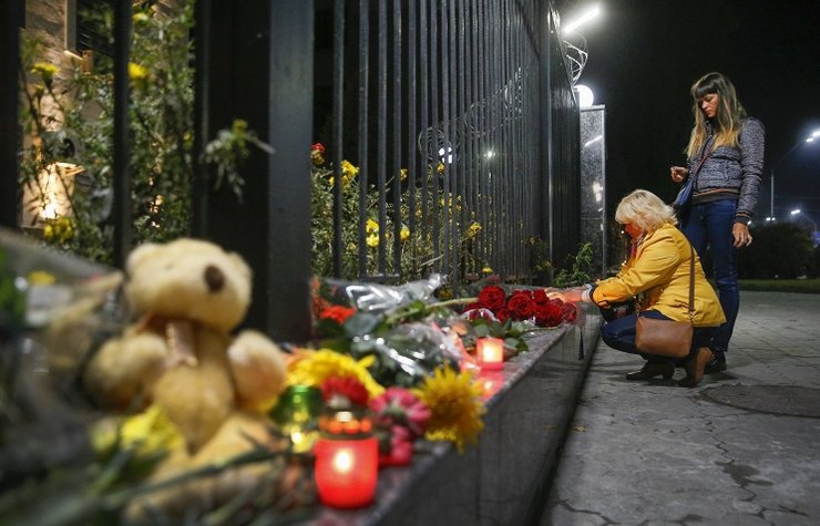 А они несут цветы к посольству России, соболезнуют, плачут.
