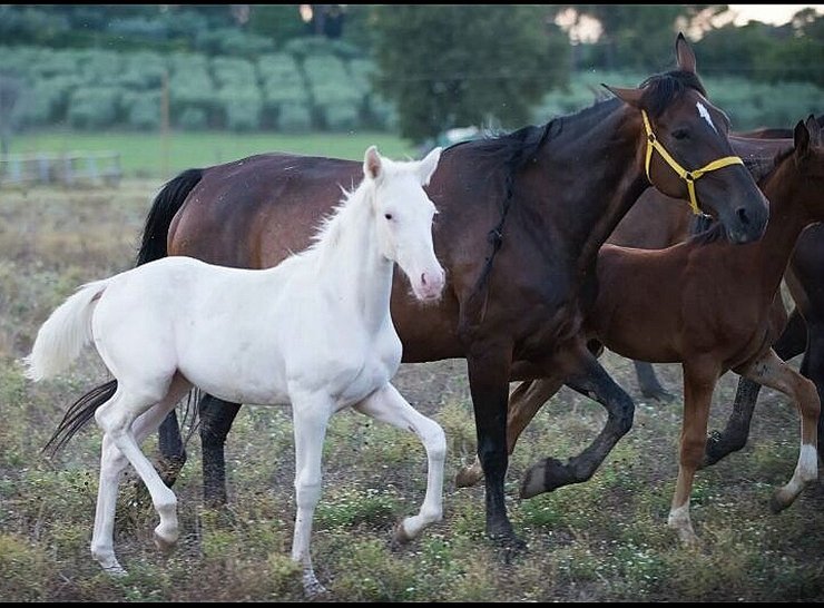 а это знаменитая липиццианская порода.. большинство из них серые, изредка вороные... видишь, жеребята все темные, подрастут и станут как мамки))