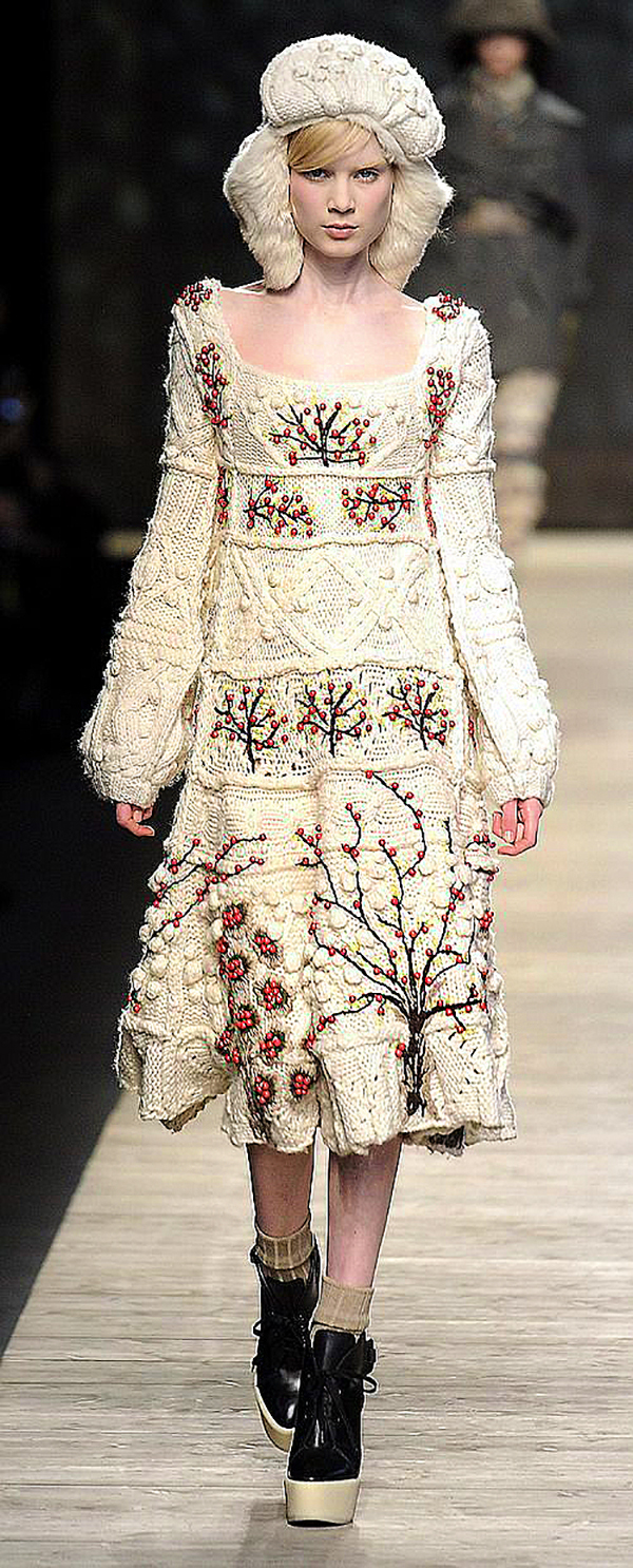 На этот раз хочу поделиться с вами находками на сезонную тему — это вязаные вещи в коллекциях известных модельеров, причем не просто трикотажные, а именно ручной вязки, и, в основном, вещи осенние или зимние, предназначенные для холодного времени года.