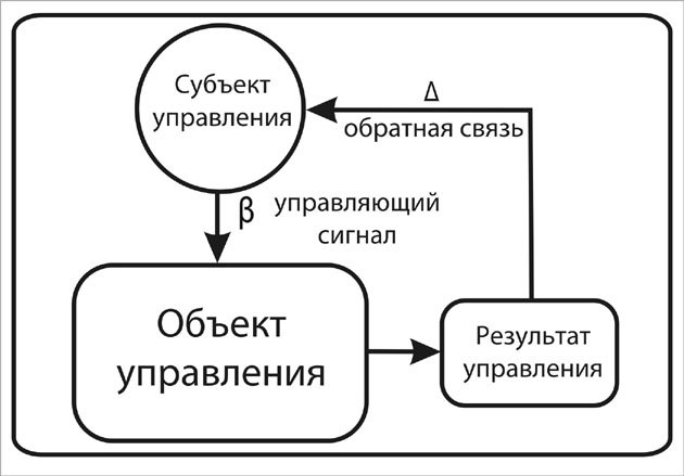 Как видим, субъект управления (носитель заданной программы) воздействует на объект управления неким управляющим сигналом (например, электрическим), который заставляет объект или его часть (например, руль корабля) реагировать необходимым образом.