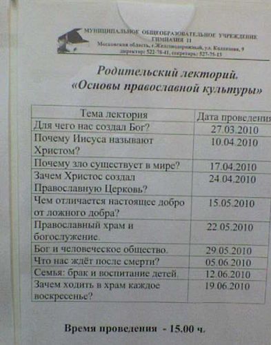Нас уверяют также, что, дескать, это будут уроки именно "культуры", а не религии, и что вести их будут светские преподаватели, а не священнослужители. Но посмотрим на объявление ПОВНИМАТЕЛЬНЕЕ.