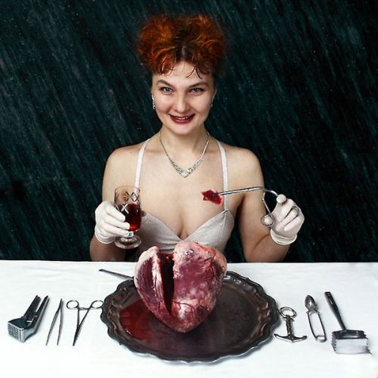 Зря она сырое сердце ест... отварное и со специями - намного вкуснее! )))