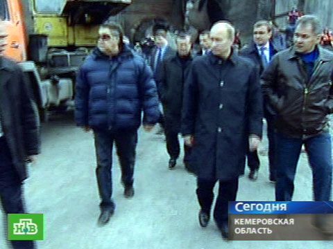 Из Новокузнецка Владимир Путин отправился в Междуреченск. Премьер посетил место трагедии. Глава МЧС Сергей Шойгу и губернатор Кемеровской области Аман Тулеев рассказали главе правительства о ходе спасательных работ. Путин распорядился
