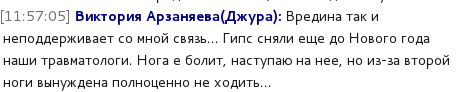 Кстати о Викуле, ей гипс сняли, оперированная нога не болит, на неё наступает. С нетерпением жду, когда ей вторую прооперируют. Вот что Вика мне напписала в скайпе.