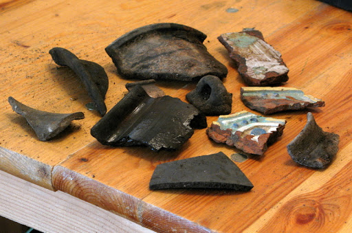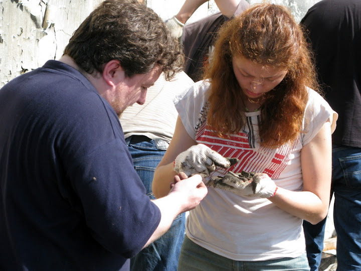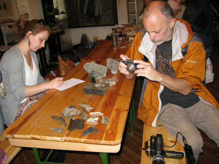 В течение часа архнадзоровцы, примкнувшие к ним активисты и просто люди, случайно забредшие в этот выходной день в Кадаши, вооружившись лопатами, с азартом разбирали отвал. Черный, рассыпчатый грунт просеивался вручную, все находки складывались в кучку, а уж оттуда выбирались самые-самые. Среди самых-самых численно преобладал XVII век – еще несколько обломков полихромных (ценинных) изразцов, осколок глубокой миски, венчики чернолощеных горшков, глиняная крышечка от какого-то сосуда и много-много черепков.